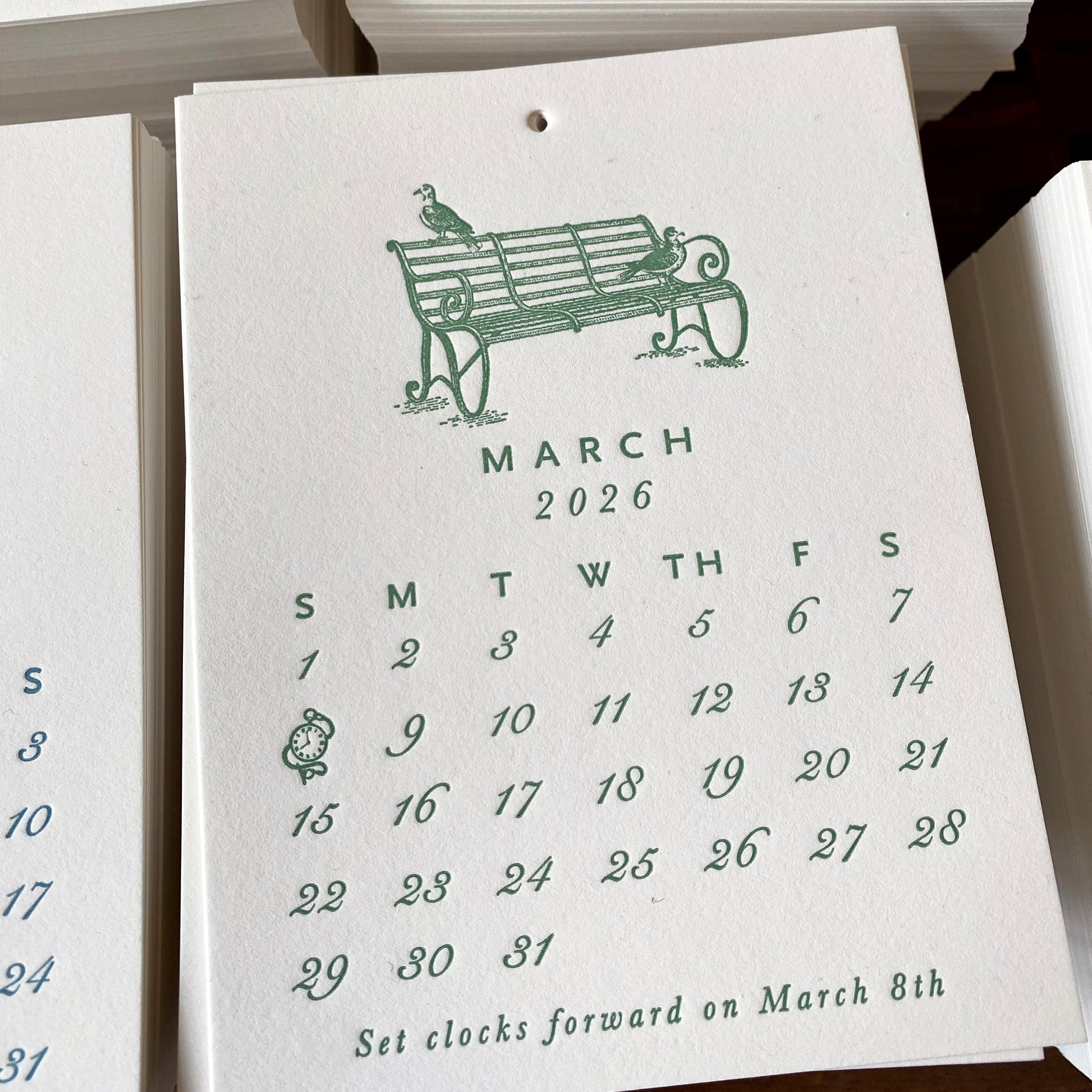 Our popular calendar features 12 pages (one for each month) as well as a resolutions/plans page to help you remember what you set out to accomplish at the beginning of the year. The calendar may be hung on the wall with a single t-pin (included) or you can pin the sheets individually to the wall for a salon style display of 2026. Each page measures measures 4.25 x 5.5 inches. Pages are packaged in a slim folded black box.