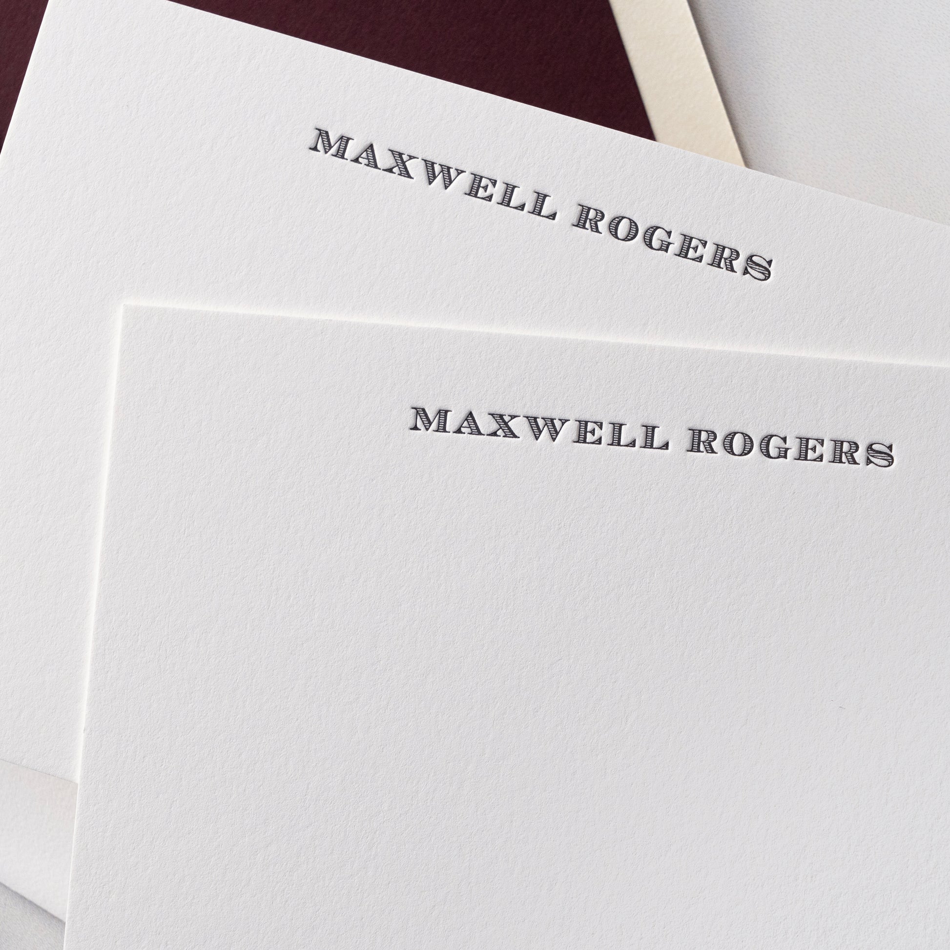 This note card design features your name in a classic, but decorative serif font.